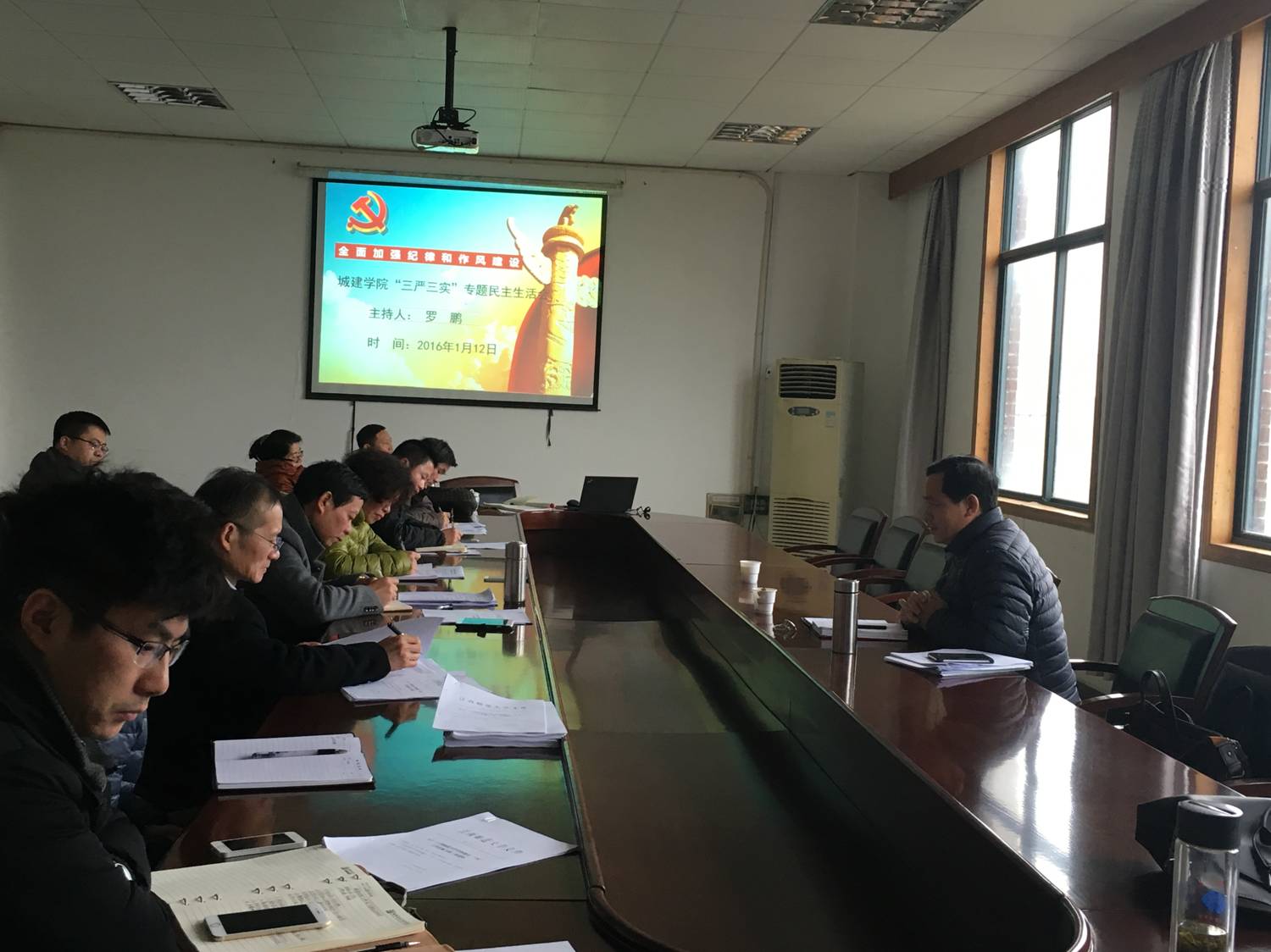 按照学校党委统一部署和要求,城建学院于1月12日下午在学院四楼大会议室召开了“三严三实”专题民主生活会。校纪委、监察审计处处长方立莅会指导,学院领导班子全体成员参加会议,部分党员群众代表应邀列席会议。会议由院党委副书记罗鹏主持。