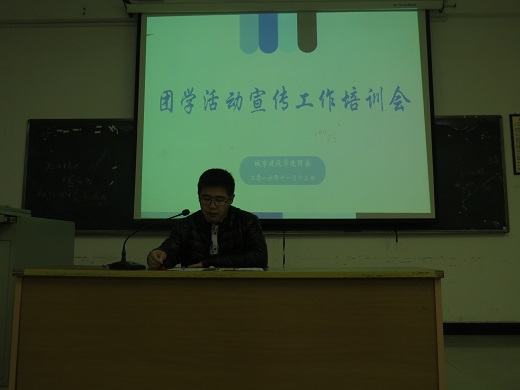为进一步规范学院团学组织宣传报道工作,加强宣传队伍建设,推动团学工作顺利开展,11月13日晚,城建学院在方荫楼1307召开了团学组织宣传工作培训会。本次会议特邀城建学院团委负责人陈典龙老师作为主讲人,城建学院学生会青年信息中心全体成员、学院社团全体宣传干事及14级、15级、16级各班宣传委员共同参加了此次会议。