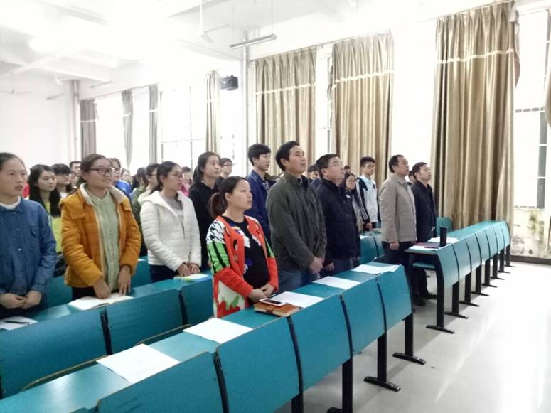 开班仪式由地理学院党委副书记赵顶兴老师主持,仪式第一项便是全体起立,奏唱《国际歌》;随着歌声的消逝,地理学院党委书记蒋梅鑫老师开始致辞,他首先以党的性质、宗旨和组织原则为切入点,结合实际情况阐述了党的领导和社会主义道路是历史和人民的必然选择;同时,他还对各学员提出了两点要求,一是要在组织上加入中国共产党,首先要在思想上入党;二是要以最广大人民的根本利益作为工作的出发点和落脚点,坚持马克思列宁主义、毛泽东思想、邓小平理论、三个代表重要思想,坚持科学发展观,时刻谨记以为人民服务为宗旨,努力学习,为党的建设事业做贡献。 接下来,由上一期学员--地理与环境学院14级代表徐骏峰以及新学员代表--16级涂叶绿同学发表讲话,他们分别讲述了对党的认识和自我的经验以及表达了坚定入党的恒心和认真学习的决心。开班仪式随着校党委组织部领导讲话后步入尾声。仪式结束后,全班同学留下,由班主任程婷老师布置培训班相关事宜,随后第一堂党课开课了。 据悉,此次入党积极分子培训班将进行为期六个课时的党课培训,还有一到两次的实践活动。希望能够通过此次开班仪式,进一步加深入党积极分子对中国共产党的认识,增强大学生的责任感、使命感,为今后的入党工作而努力。按照党的十八大和党章提出的新要求,教育引导学员认真学习党的基本理论知识,加强党性修养,提高政治觉悟,刻苦学习科学文化知识,努力工作,勇于创新,勤于实践,以实际行动争取早日成为一名合格的共产党员。 ![]()