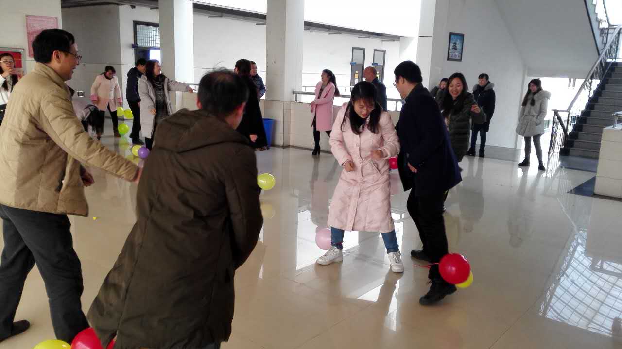 游艺会在“踩气球”比赛中拉开了帷幕。紧接着教职工按照自己的兴趣爱好分别加入到“跳绳”“投硬币”等活动中。活动期间“教工之家”活动室内也欢声笑语汇成一片,没有参加游戏的教职工在一起聊天谈心,回忆过去一年的开心往事。整个下午,学院教职工纵情体验和享受,游艺活动高潮迭起、精彩纷呈,在热情洋溢、欢乐祥和的气氛中游艺会圆满结束。 此次教职工迎新年趣味游艺会为学院增添了新年的欢快气氛,促进了教职工之间的交流,让辛勤工作了一年的学院广大教职工在轻松愉快的游艺活动中提前感受新春的喜悦,相信,全院教职工们将会以更加昂扬姿态迎接崭新的一年。 ![]()