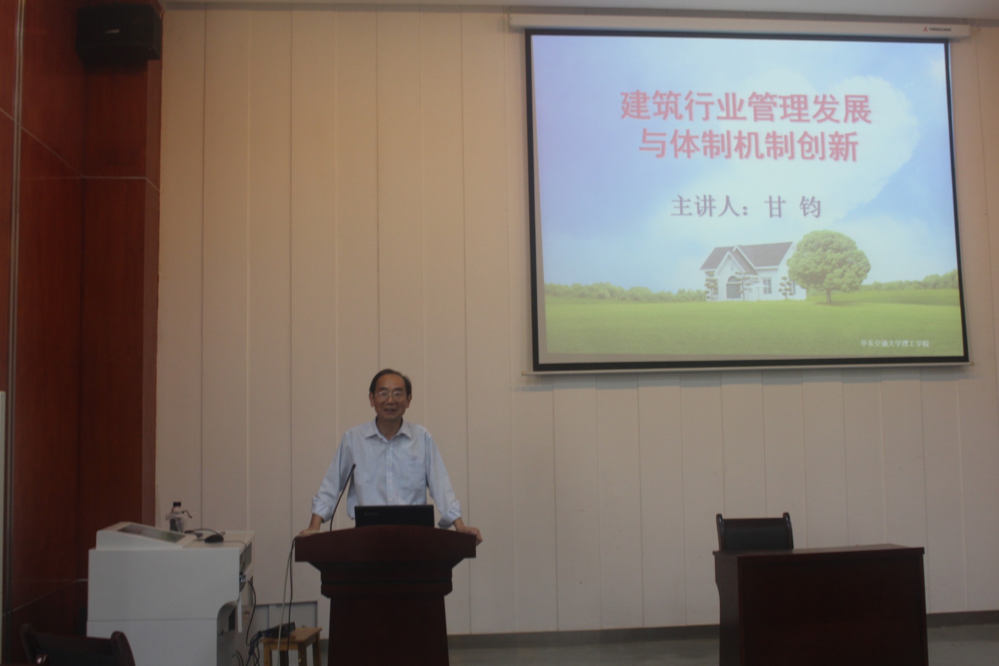 为加深同学们对建筑行业管理方面的了解,城市建设学院于2017年4月18日下午2点在方荫楼一区一楼报告厅召开了主题为“建筑行业管理发展与体制机制创新”的讲座。此次讲座由南昌市装饰行业协会会长甘钧主讲,15级、16级房地产开发与管理专业和工程管理专业的全体学生参加了此次讲座。