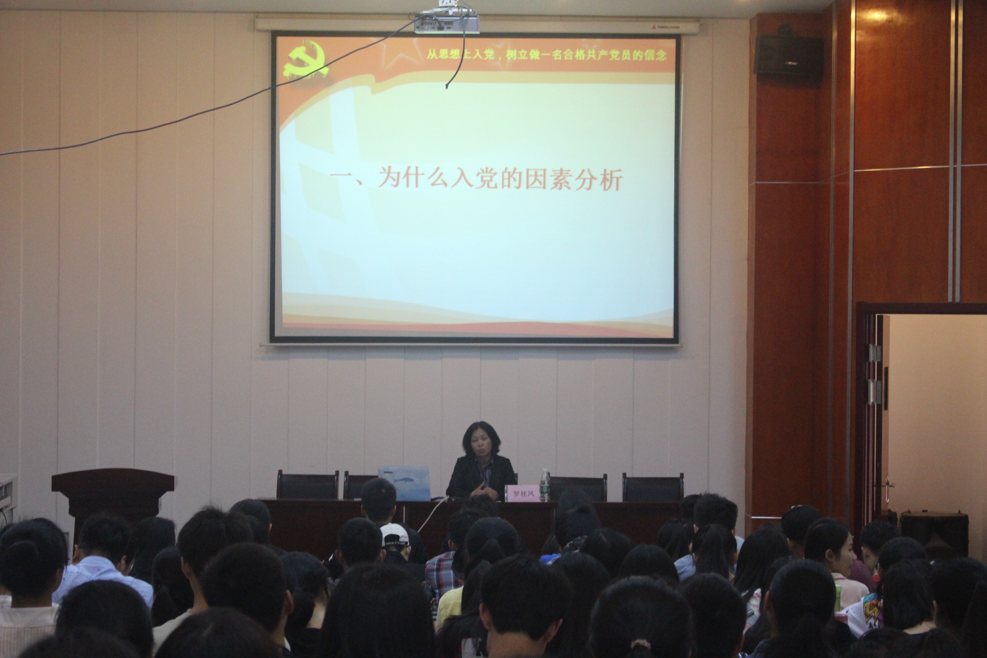 ![]() ![]() ![]() 为帮助新发展的入党积极分子强化对党的认知,提升思想觉悟,城市建设学院于2017年4月18日在方荫楼一楼报告厅举行了江西师大党校城市建设、地理与环境学院分校入党积极分子培训班开班仪式。城市建设学院党委书记罗桂凤,党委组织部副处级组织员郭亮亮、地理与环境学院党委副书记赵项兴、江西师大党校尹可雨老师及全体入党积极分子一百余人参加了仪式,开班仪式由学院党委副书记陈武阳老师主持。 开班仪式在激昂的国际歌中拉开了序幕。首先,罗桂凤书记代表学院党委对本期入党积极分子培训班的顺利开班表示祝贺,并对入党积极份子参加培训班表示欢迎,她希望广大入党积极分子利用党校上课的契机仔细研读党史,认真学习党章,端正入党动机,早日成长为一个合格的党员;党委组织部副处级组织员郭亮亮老师在开班仪式上做了讲话,他强调入党积极分子要端正入党动机,加强对党的认识,确立政治信仰,努力使自己成为中国特色社会主义的合格建设者和可靠接班人。2014级地理科学专业吴孝波同学、2016级工程管理班孟玲同学分别作为上期和本期培训班代表在开班仪式上发言。 开班仪式结束后,学院党委书记罗桂凤以《从思想上入党,树立做一名合格共产党员的信念》为题,给入党积极分子上了第一节党课。(文/图 城市建设学院团委) 上一篇:拓展潜能,奋勇挑战 下一篇:城建学院成功举办读书日之“读享方荫”活动 |