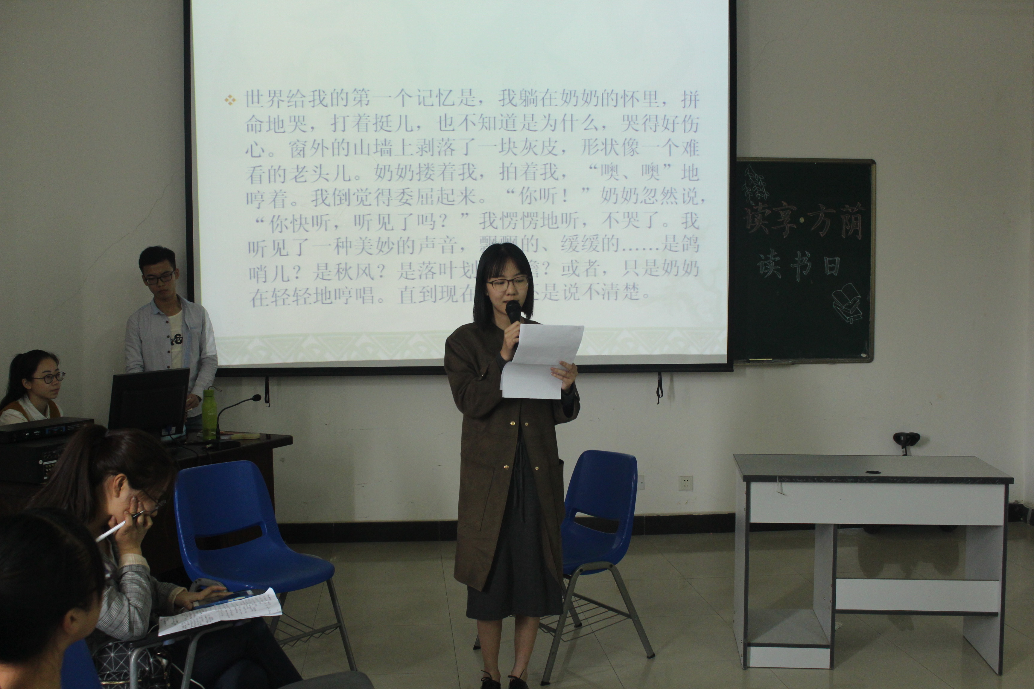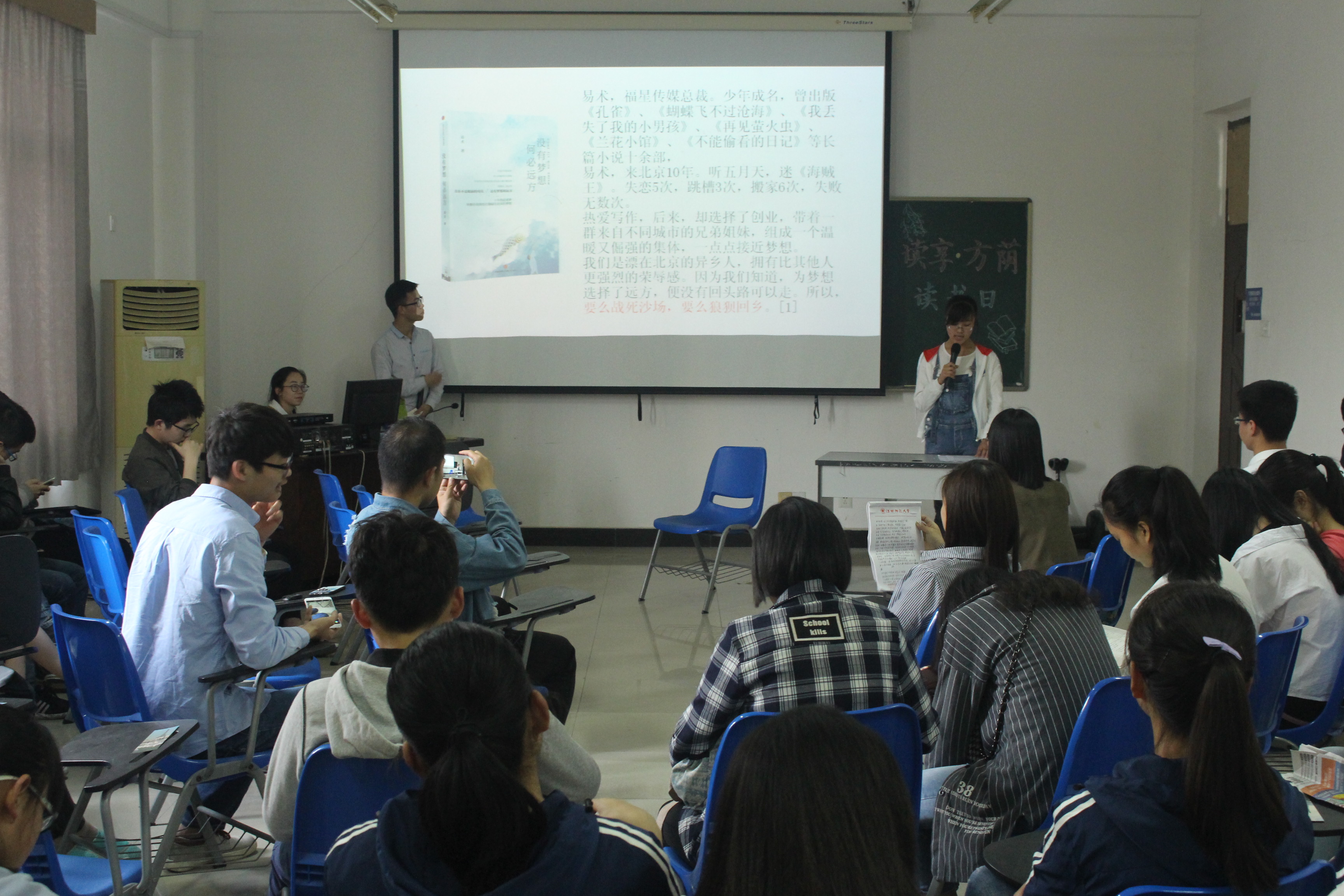 为积极搭建城建学生之间的读书交流平台,营造浓厚的阅读氛围,在世界读书日来临之际,4月22日下午,由城建学院团委学生会主办的“读享方荫”读书日活动于方荫楼1513教室成功举办。本次活动由学生会学习部部长白家城同学主持,城建学院15、16级部分同学参与了本次活动。 本次活动共分为吟诵经典、读有所思、好书大家看三个环节。在第一个朗读环节中,作为首位上台的谢可鹭同学朗读了史铁生先生的作品《奶奶的星星》,她不仅阐述了朗读此文章的缘由,也动情地表达了自身对作品的喜爱与敬意,观众们也陶醉在她细腻的情感中;在读有所思环节,同学分别上台与观众们分享读后感并与主持人作了简单交流;紧接着,在第三环节中,受邀嘉宾们向在座同学们推荐了精品书目,让在座观众充分了解了各本书籍的特色与精彩之处。活动最后,在座同学以投票的形式选出了本期活动的最佳好书推荐者谢可鹭同学。 本次读书日活动不仅提供了一个书海畅谈的平台,拓宽了同学们的阅读视野,同时积极倡导多读书读好书的良好习惯,对学院的学风建设具有重要意义。阅读,不是一种口头主张,也不是装点人生的花边。阅读就是生活本身,是生命本身的厚度与颜色,是永怀梦想的根底与力量,希望城建学子能在此次读书日活动中收获阅读带来的生生不息的动力与永不褪色的理想。据悉,城建学院在接下来还会定期举办“读书日”活动,努力让阅读成为城建学子的一种习惯。(文/图 城市建设学院团委 ) 上一篇:城市建设学院第十五期、地理与环境学院第十三期入党积极分子培训班顺利开班 下一篇:学党习党,你问我答