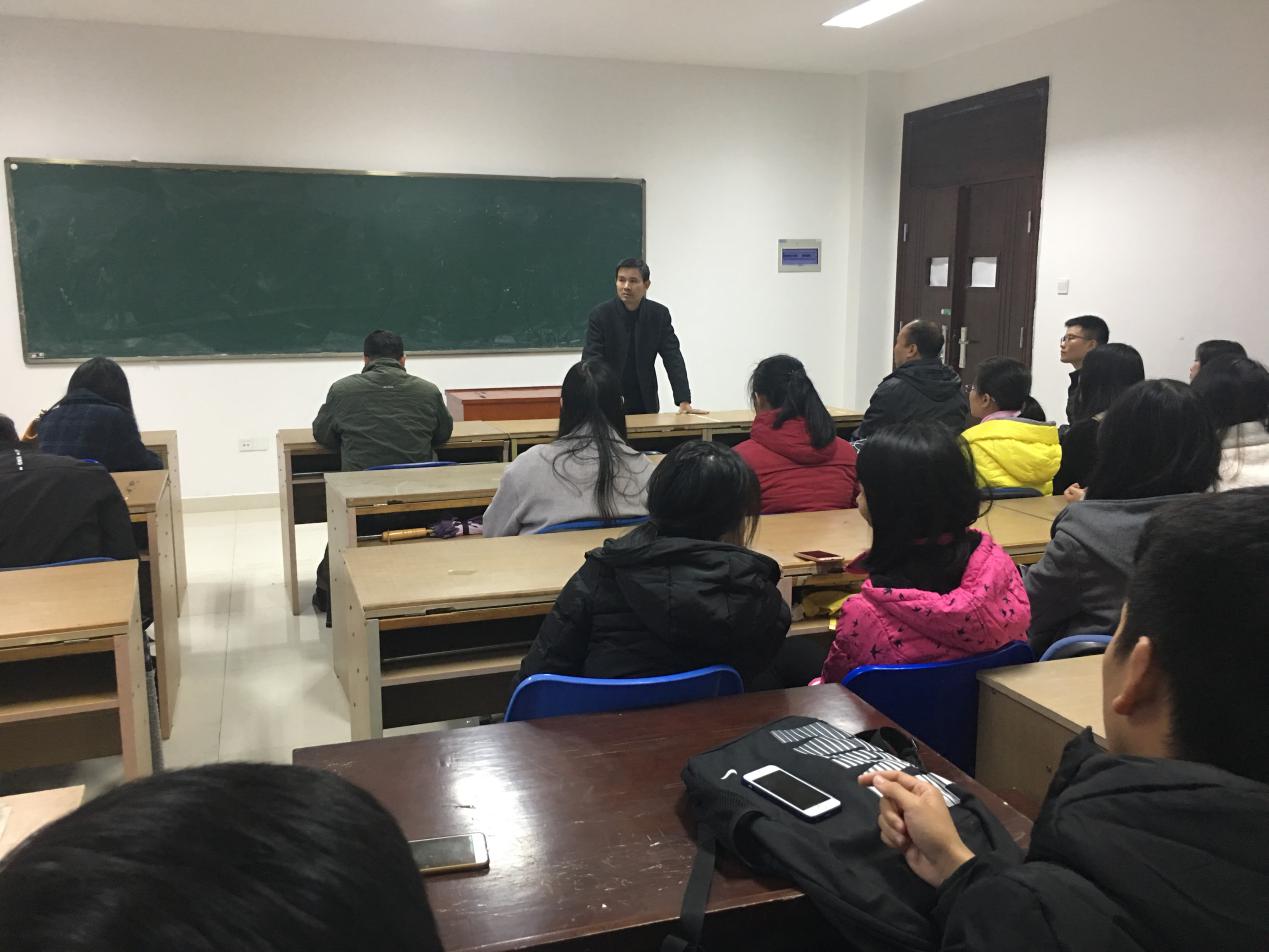 2017年11月19日下午,城市建设学院在实验大楼东309教室举行了施工、造价毕业实习交流会。出席本次交流会的有城建学院副院长范正根老师、工程管理系系主任曾文海老师、学院刘章生老师、05级校友付伟明、07级校友胡碧杰、08级校友胡丽红、10级校友吴海涛,14级施工造价方向的实习生徐燕、朱光等17位同学, 王晨、王帅等11位15级工管、房地产同学旁听交流会。 会议由系主任曾文海主持,副院长范正根作总结发言。