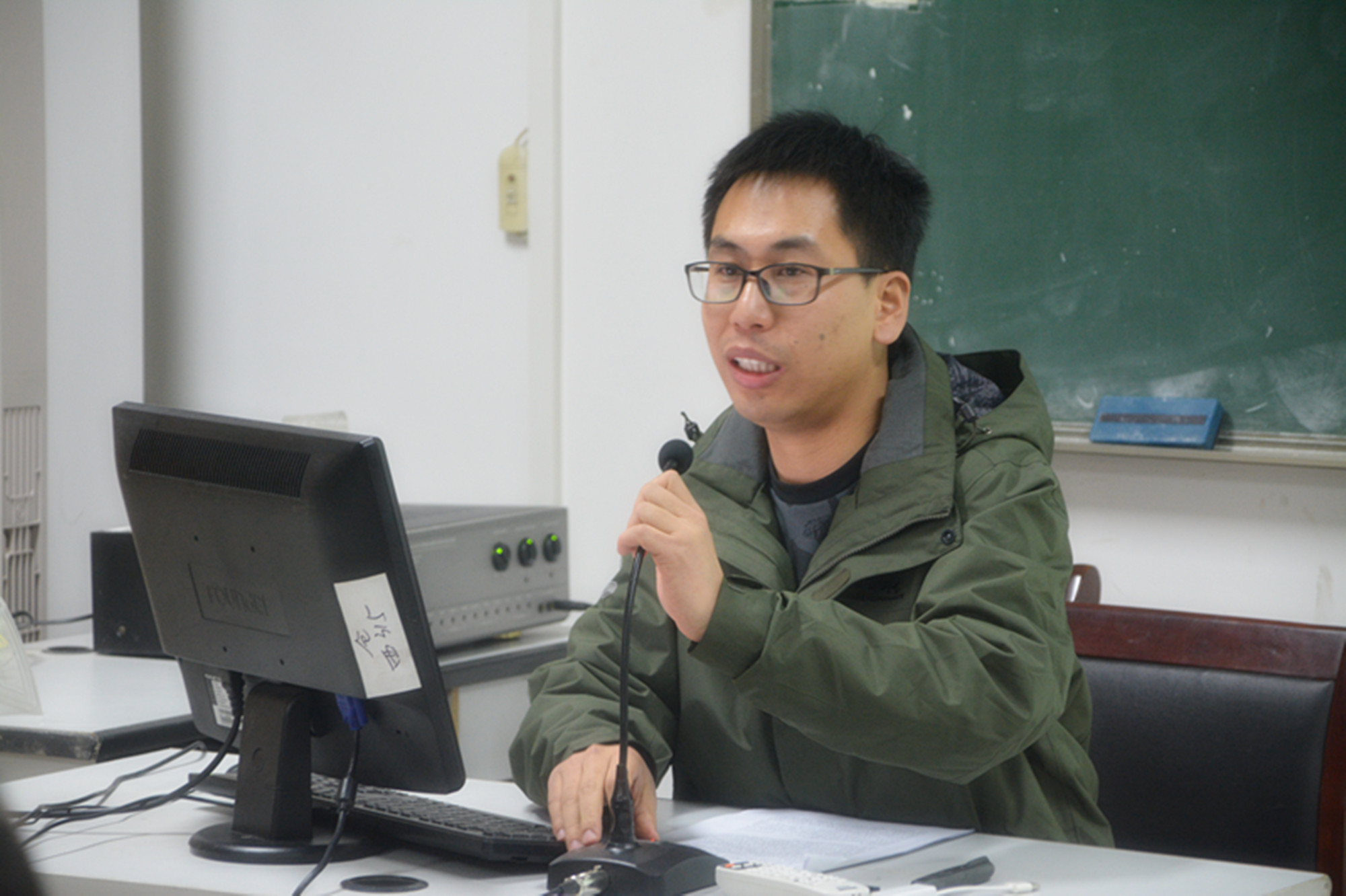 分享会伊始,主持人赖彬彬向前来参加分享会的有国际工作经验的校友和同学们表达了感谢。第一位上台分享的是朱昭波校友,朱昭波毕业后在肯尼亚工作多年,他给同学们介绍了肯尼亚的城市发展情况和当地的风土人情,分享了自己在肯尼亚从事工程项目管理工作时的经历和感悟,并对同学的学习和未来工作提出了一些中肯建议。第二个分享经验的校友为黄敏,他分享了自己毕业后在加纳的生活情况和工作经验,让同学们对加纳的风土人情、城市建设和工程管理工作有了更加具体的了解。随后,进行提问环节,同学们向两位校友提出了许多有趣却又实际的问题,尤其值得一提的是有的学生采用英语向校友提问,校友同样用英语进行解答,然后再用中文将对话内容进行现场翻译,外语交流流利,现场气氛轻松。互动环节后,15工管邱民现场即席发言,总结了自己听两位校友专题分享后的收获和体会。 主持人介绍参会老师和校友