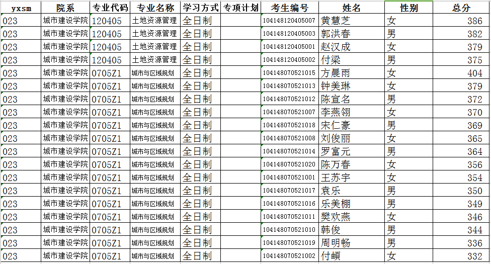 城市建设学院2018年硕士研究生入学考试复试结果公示
