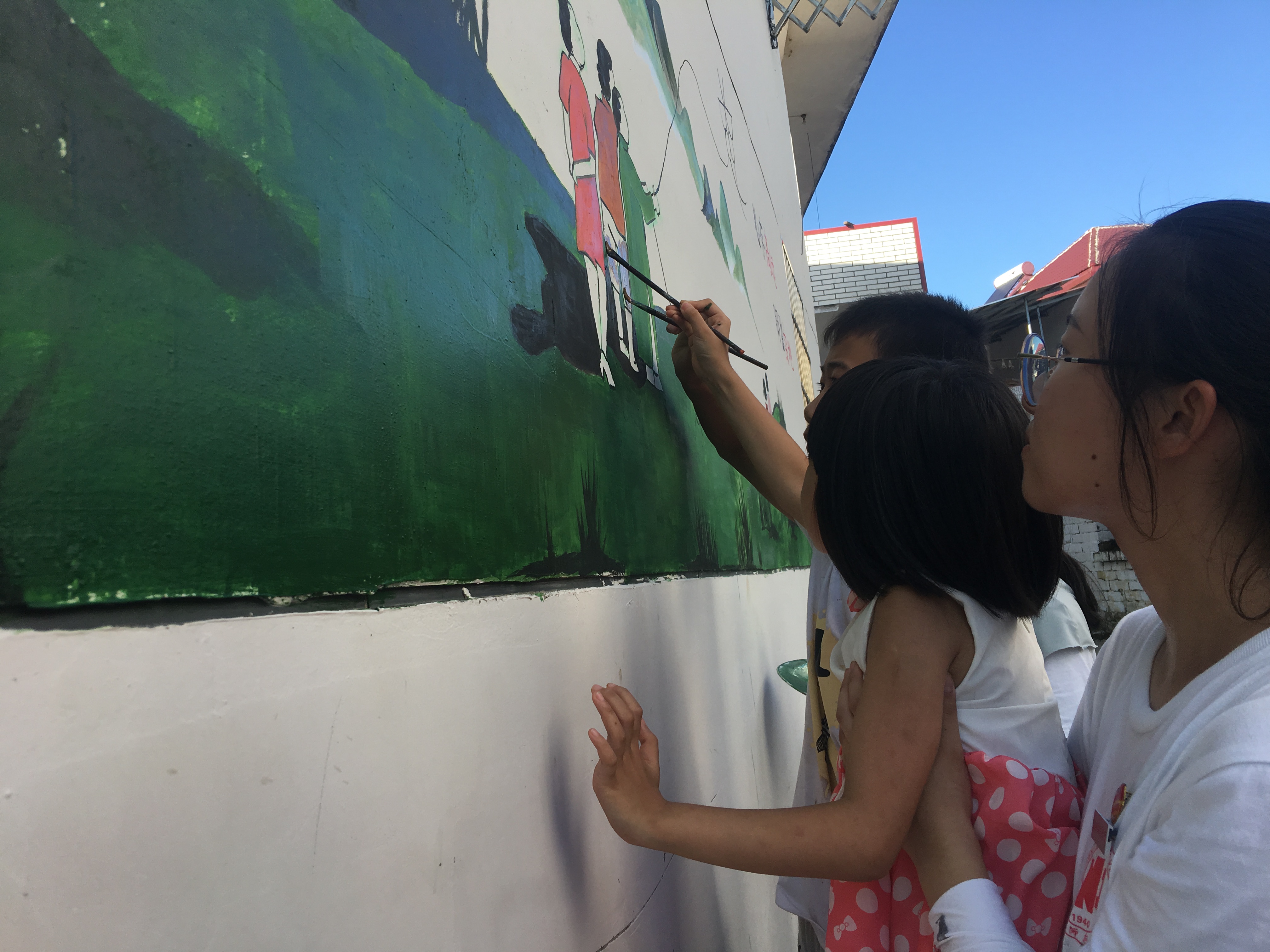 实践服务队带墙绘进入当地乡村,通过人民群众所喜闻乐见的形式,助力当地贫困乡村实现精神脱贫,为打造秀美乡村尽心尽力;