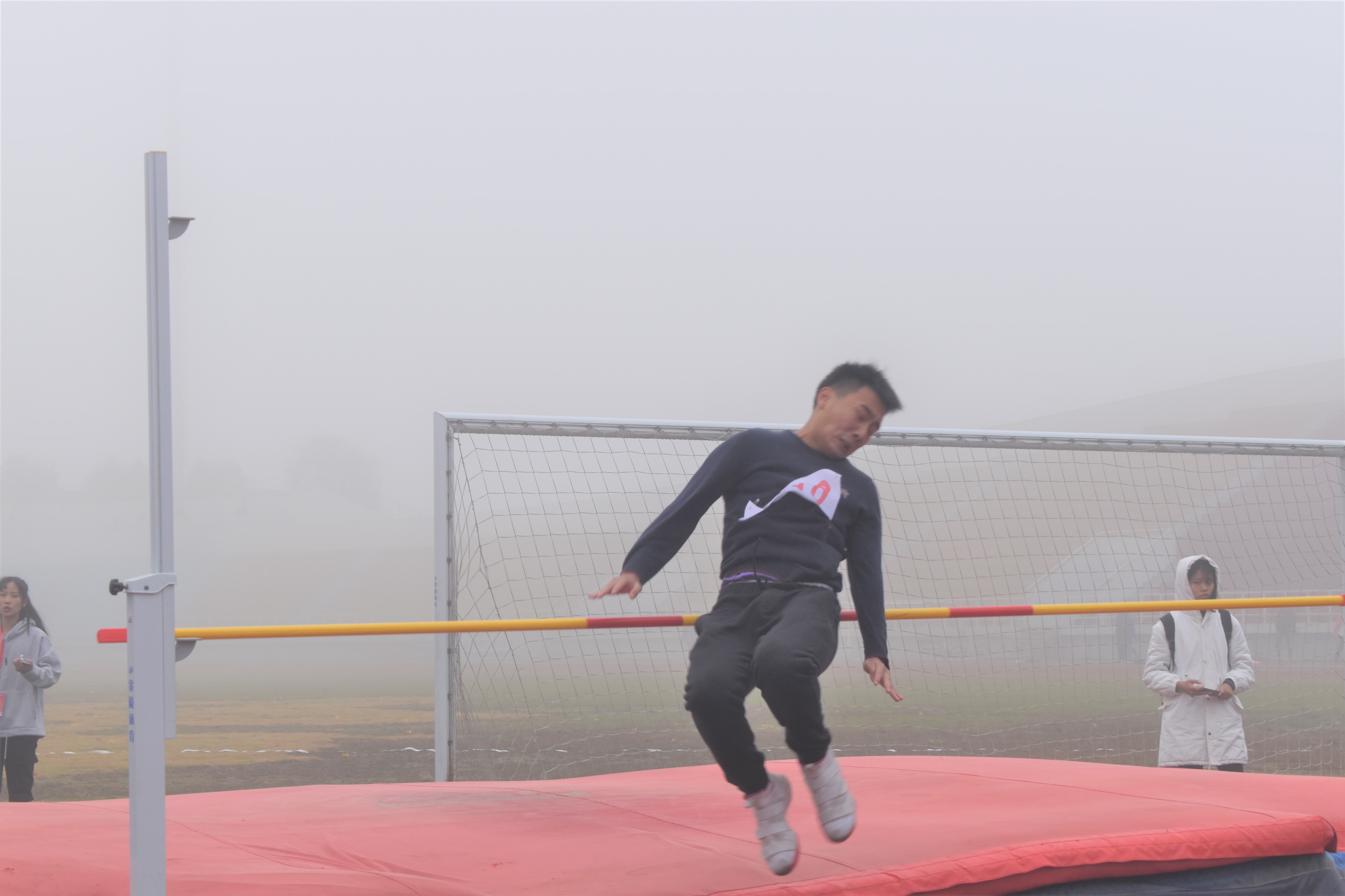 11月9日上午8点,秋季运动会甲组男子跳高预决赛在贝壳体育场顺利进行。城市建设学院简志昱、潘家森参加了此次跳高比赛。