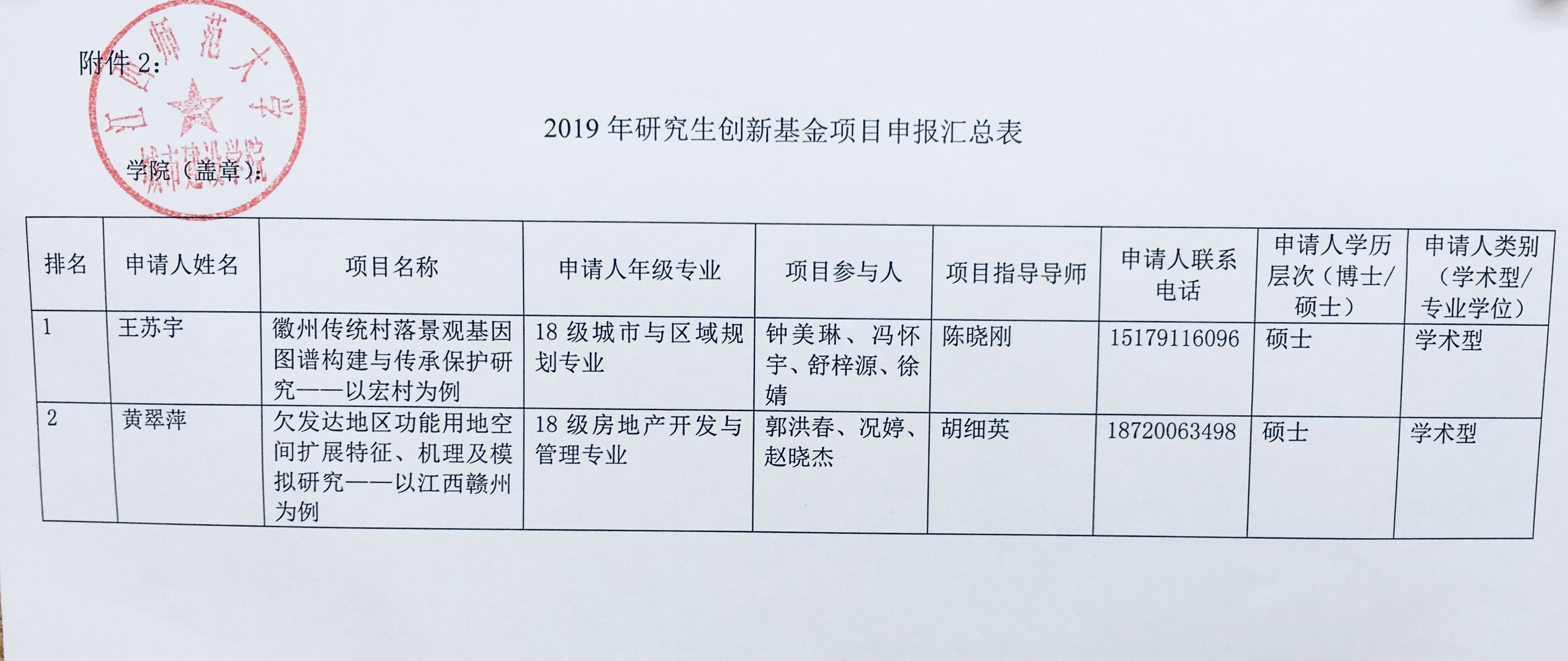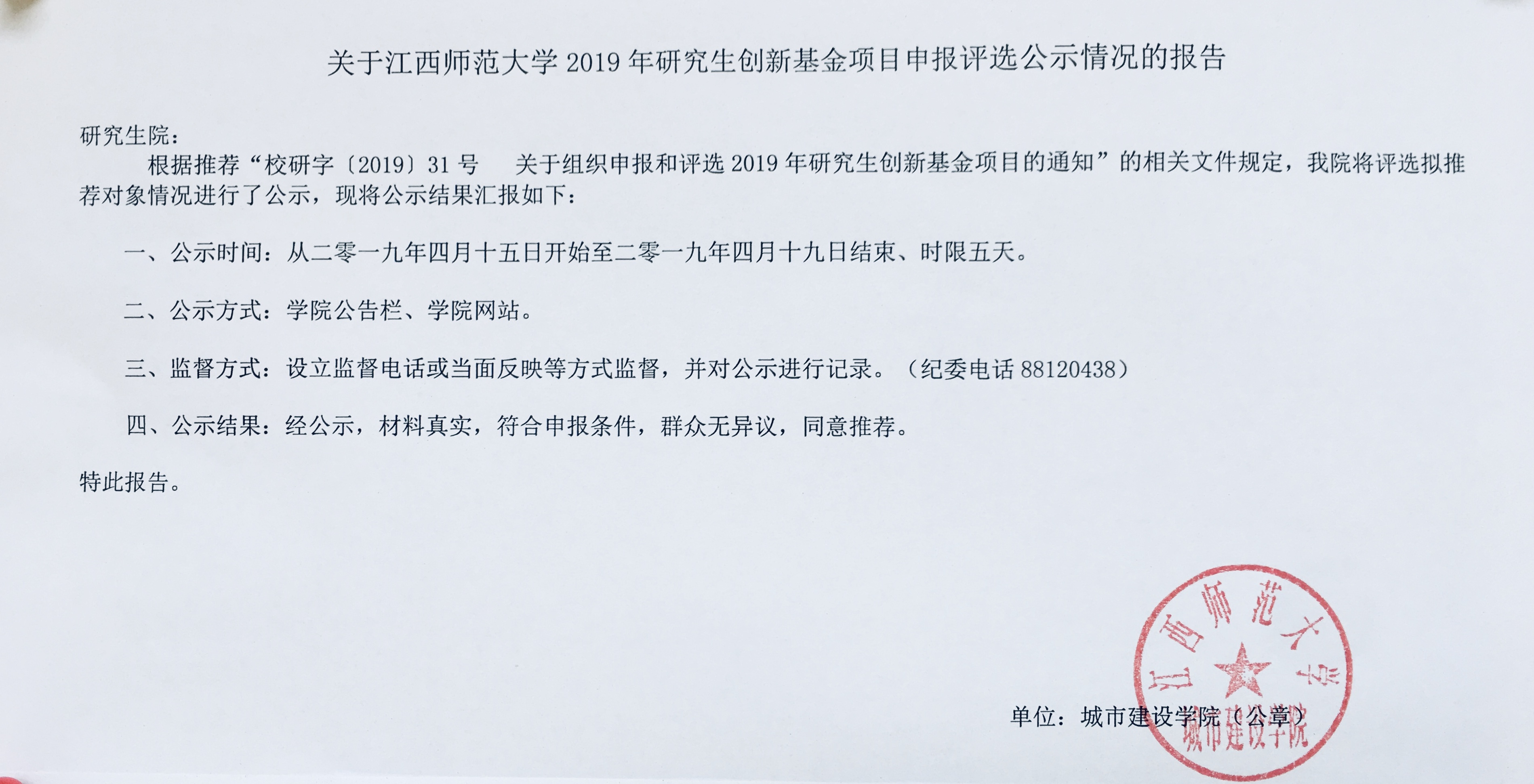 江西师范大学城市建设学院2019年研究生创新基金项目申报评选公示