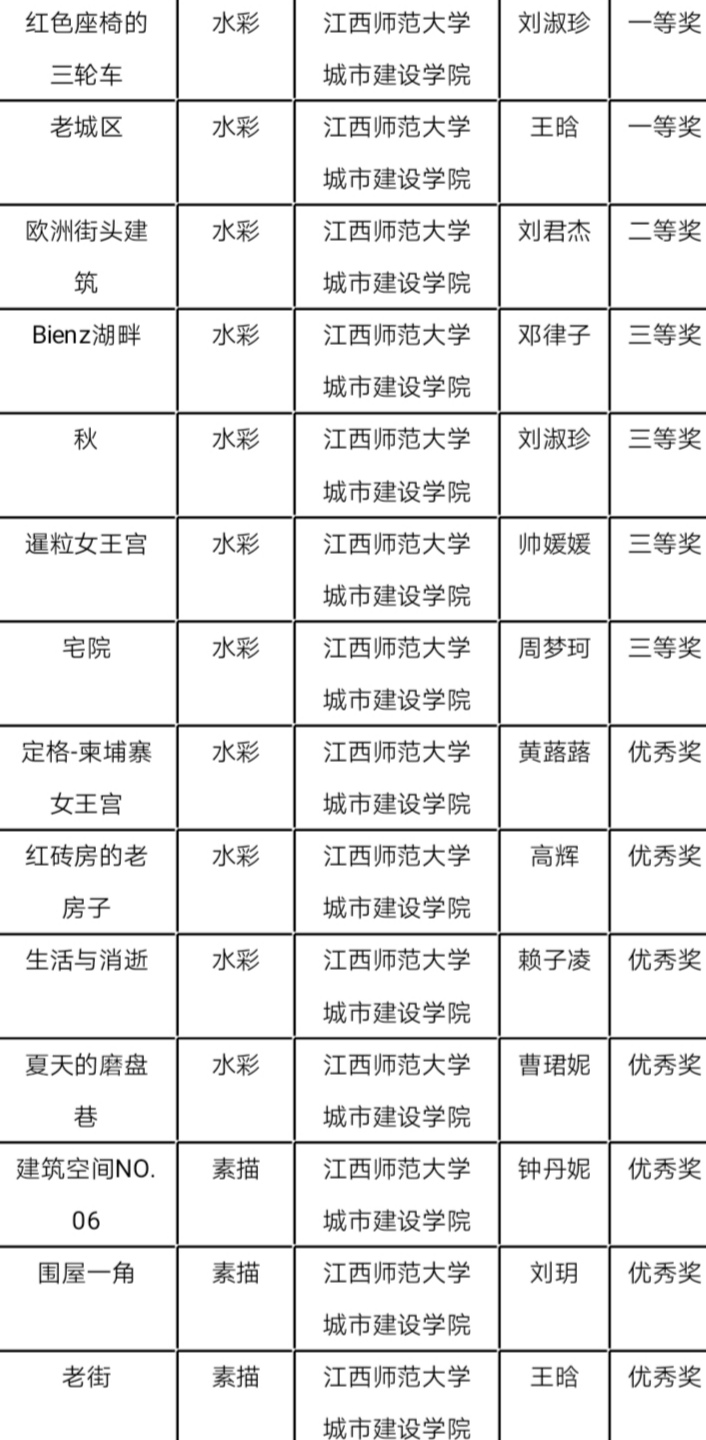 2019全国高等院校建筑与环境设计专业学生美术作品大奖赛我校获奖学生及作品名单:
