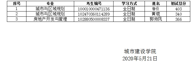 城市建设学院2020年硕士研究生调剂复试成绩公示