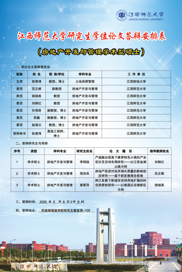 城市建设学院土地资源管理学术型硕士研究生学位论文答辩