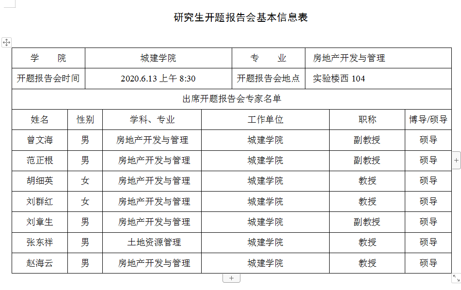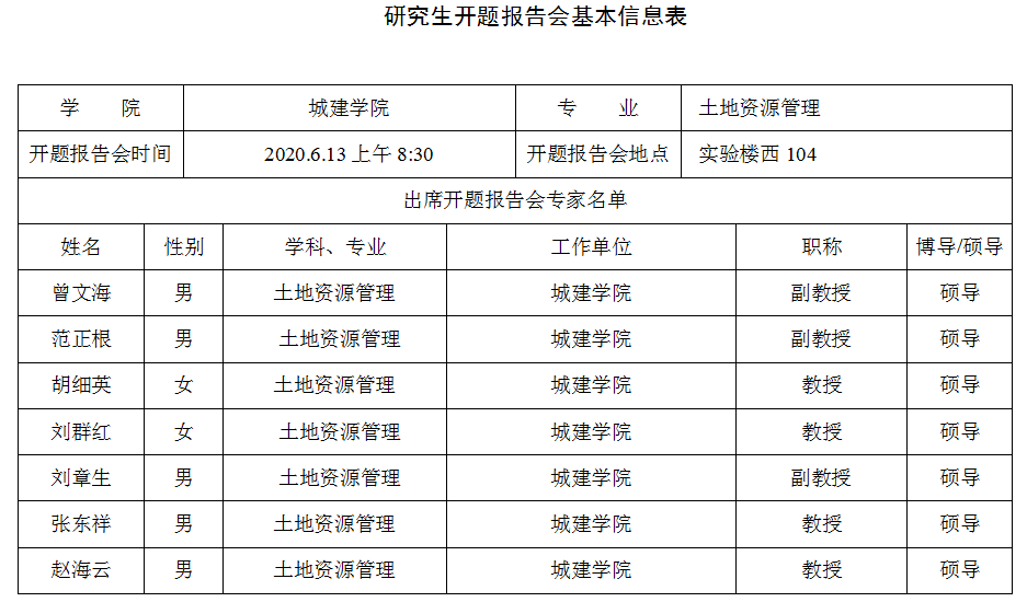 城市建设学院土地资源管理学术型硕士研究生学位论文答辩