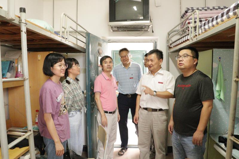 为及时了解2020级新生寝室入住情况,让新生们充分感受学校及学院大家庭的温暖,9月12日下午,城市建设学院党委书记黄晋、党委副书记陈武阳,副院长范正根,副院长刘杰,团委负责人黄珍慧,20级新生辅导员钟鹏来到13栋寝室,慰问2020级新生,了解新生的情况。