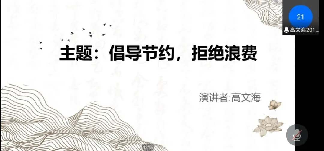 9月30日晚上7点,城市建设学院在腾讯会议上举办了以“倡导节约,杜绝浪费”为主题的读书日活动,各个年级的同学们都积极参与,反响热烈。