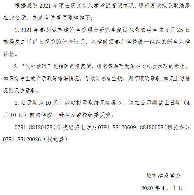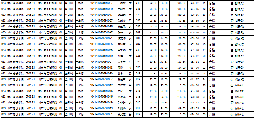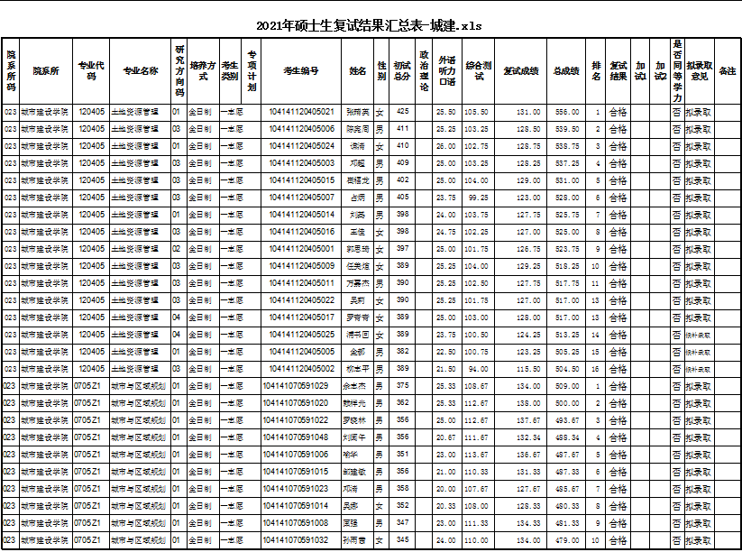 城市建设学院2021年硕士研究生入学考试复试结果公示