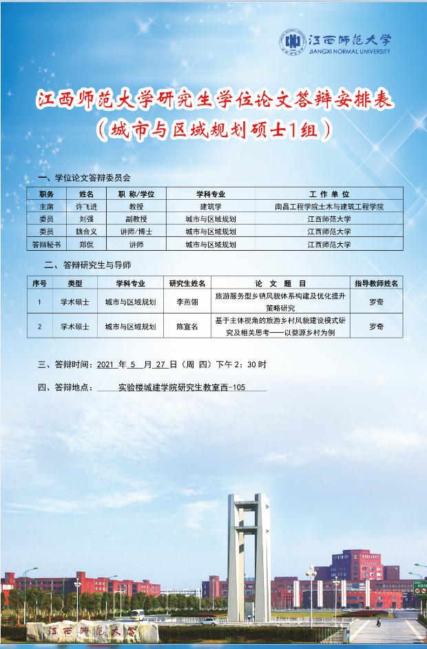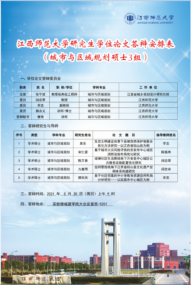 2021年城市建设学院城市与区域规划学术型硕士研究生学位论文答辩