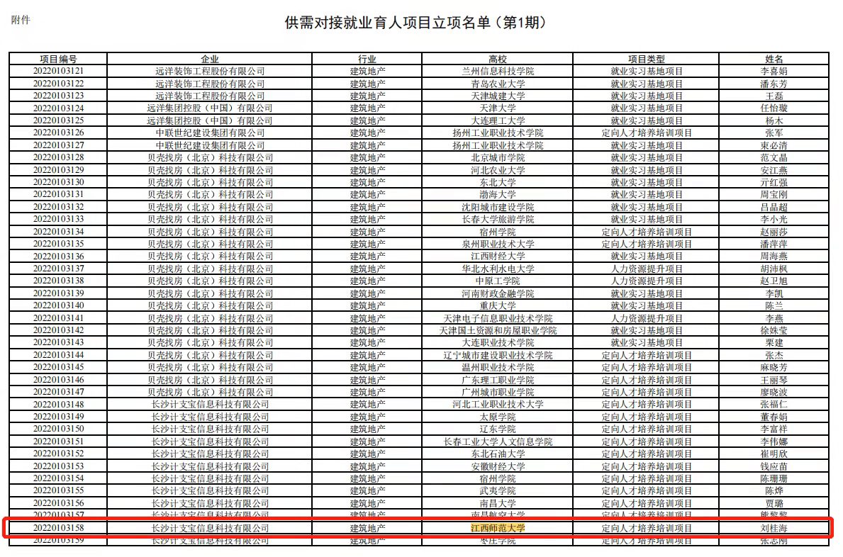 近日,教育部公布了首期供需对接就业育人项目立项名单,城市建设学院刘桂海老师申请的“计支宝数字化合约计量工程师项目”获批立项(全校唯一)。