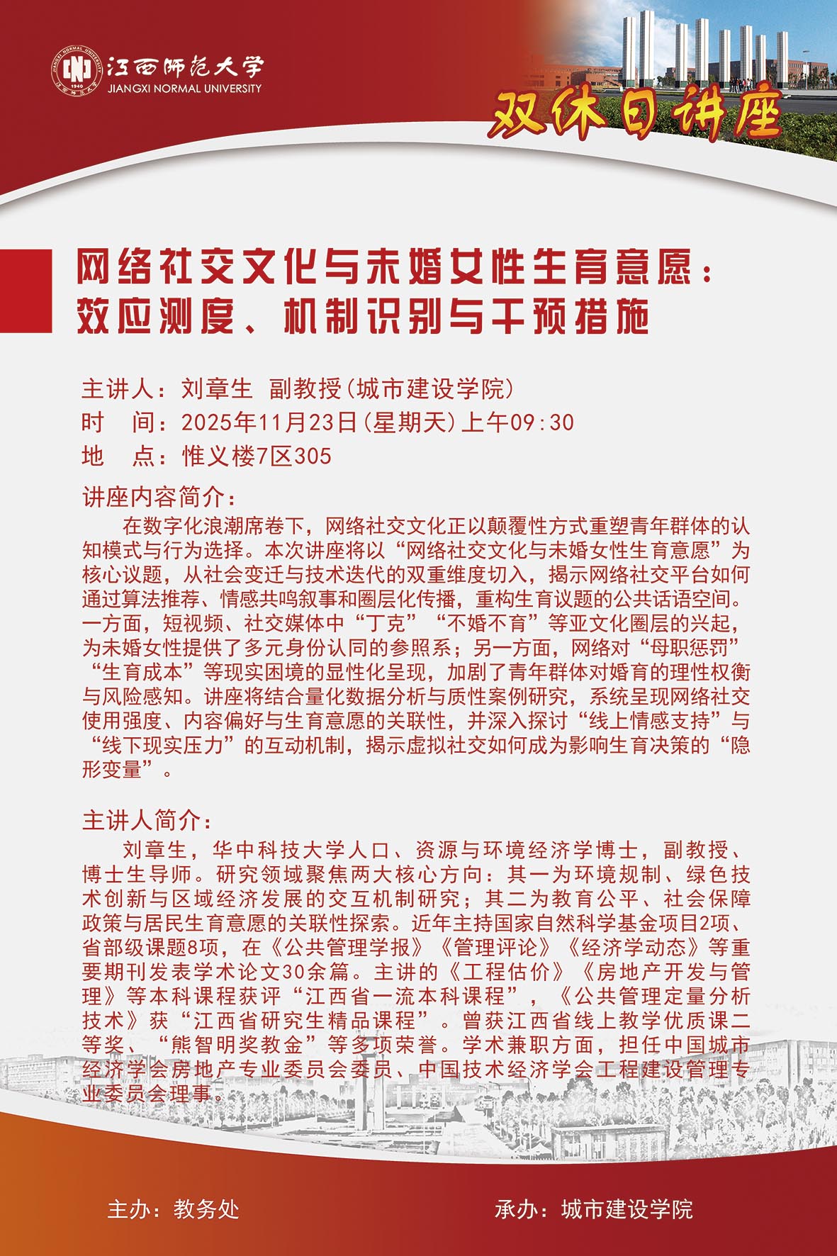 双休日讲座——网络社交文化与未婚女性生育意愿:效应测度、机制识别与干预措施