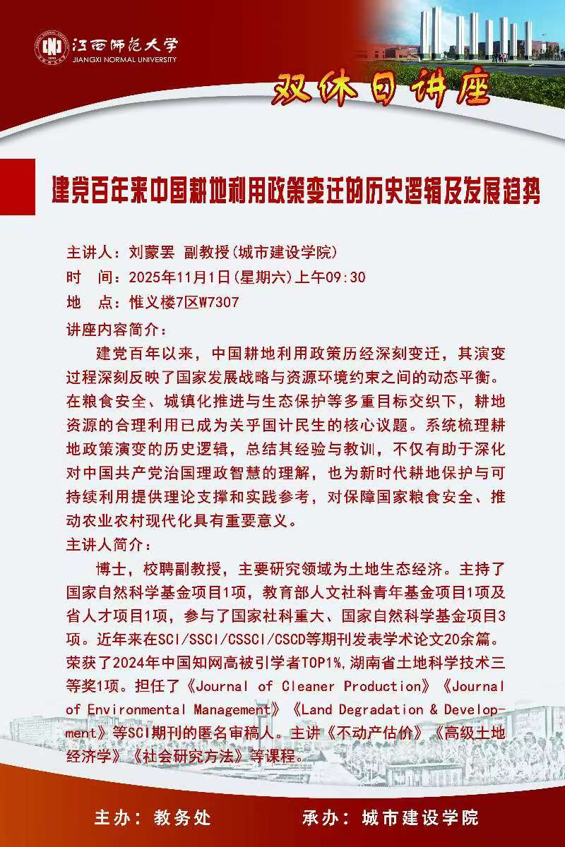 双休日讲座——建党百年来中国耕地利用政策变迁的历史逻辑及发展趋势