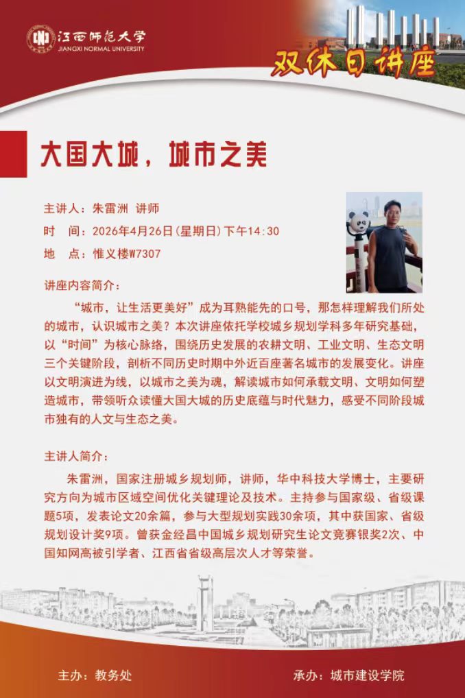 时间:2026年4月26日(星期日)下午14:30地点:惟义楼W7307
