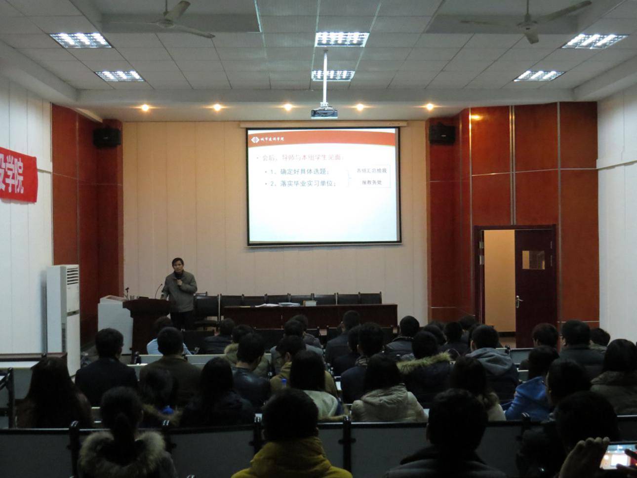 2015年3月3日下午,在方荫楼一楼多功能报告厅内,城建学院召开2011级工程管理专业毕业实习和毕业设计(论文)动员会。城建学院教学副院长范正根老师、工程管理系各专业老师以及11级工程管理专业同学准时参加了会议。