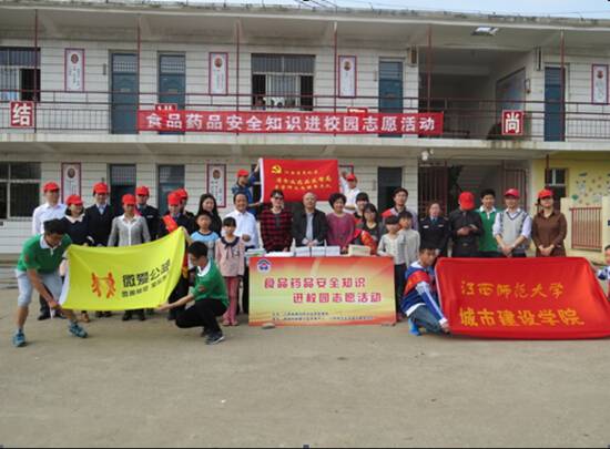 为进一步引导学生正确看待我国食品药品安全现状,让广大青少年从小学习了解食品药品安全常识、普及食品药品安全法律法规,南昌市微爱公益发展中心与城市建设学院青年志愿者协会联合江西省食品药品监督局,赴城建学院定点志愿者活动地——高新区昌东镇阳门小学,进行了以“关注食品安全,关爱儿童成长”为主题的食品安全知识讲座。城建学院党委书记罗桂凤,省药监局副巡视员肖云昌出席此次活动。