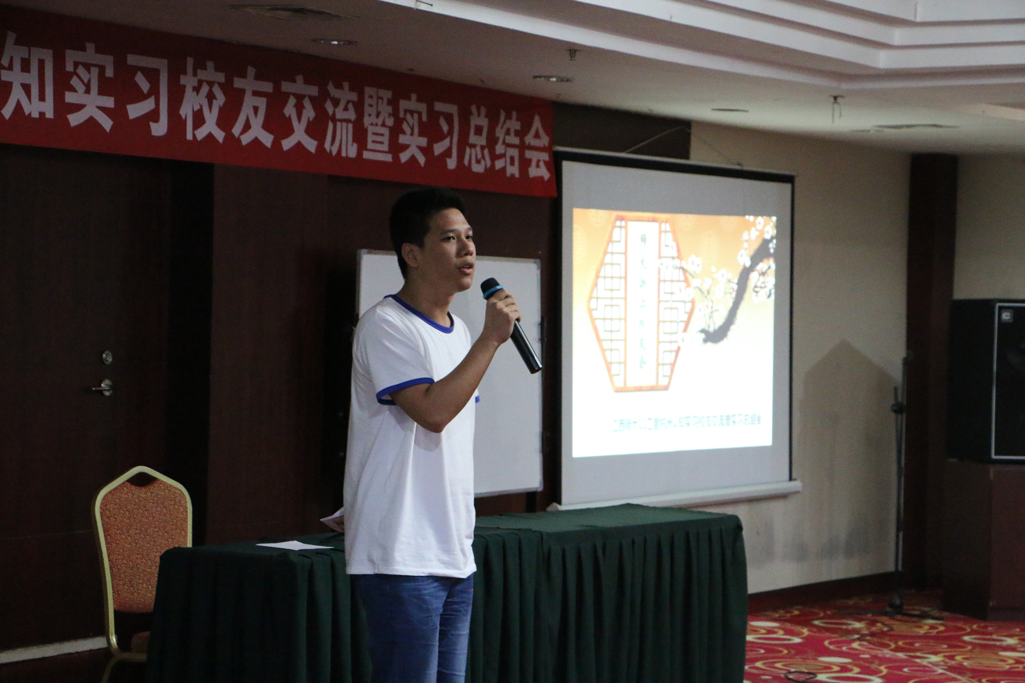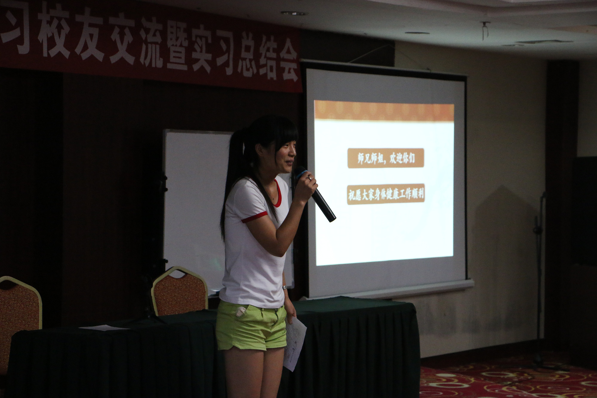 会议主要内容如下:(1)嘉宾签到入场;(2)主持人介绍嘉宾和会议内容;(3)系主任曾文海致辞;(4)校友代表发言;(5)认知实习视频播放;(6)学生代表实习总结;(7)学生自编小品演出;(8)教学副院长范正根总结;(9)晚上聚餐(同时建立浙江校友会)。