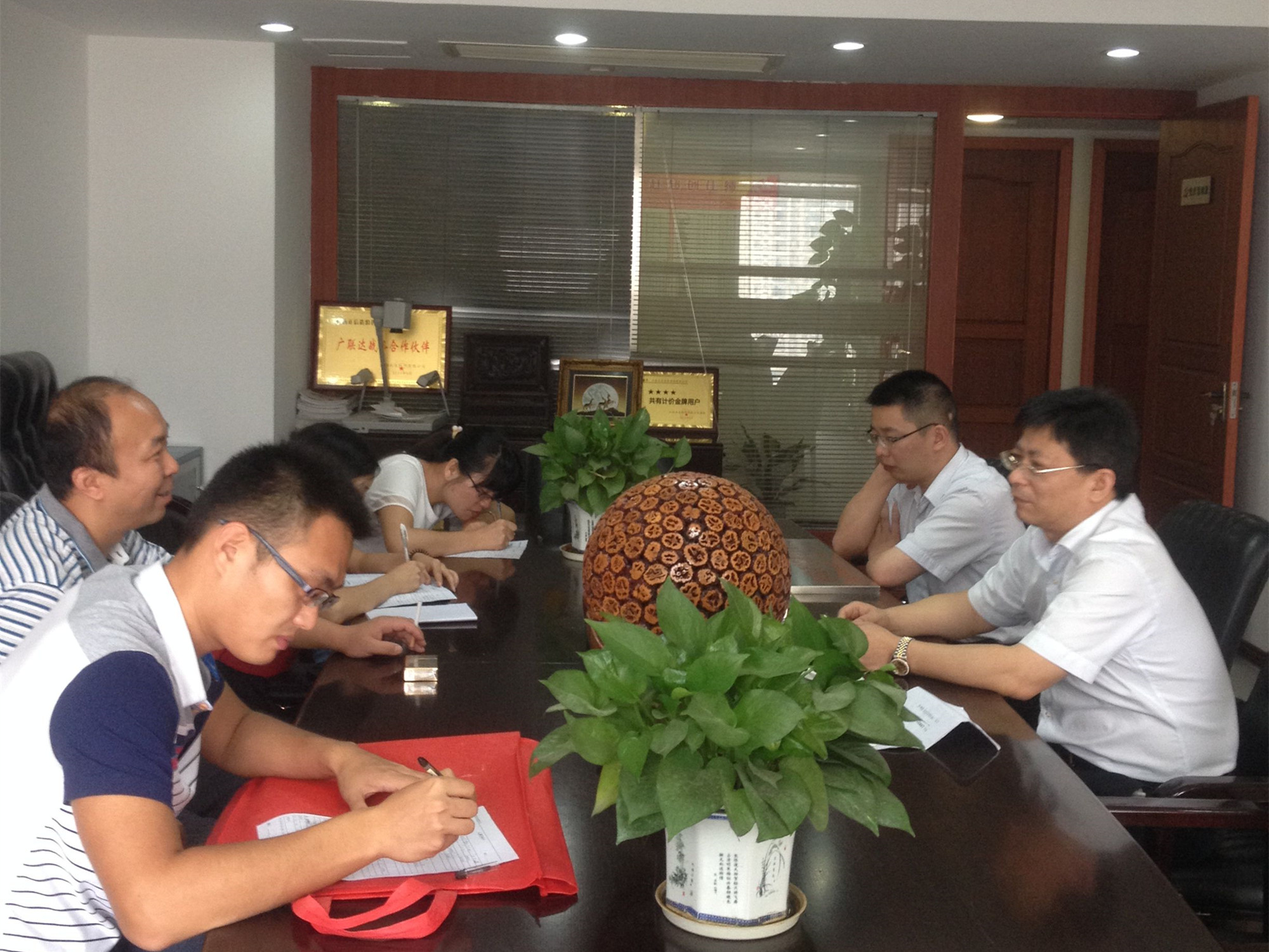 曾文海老师首先介绍此行的三个目的:1.举行实习基地授牌仪式。2.推荐三位12级工程管理班同学来公司正式实习。3.就未来校企互动,有效促进学生实习培养互换意见。随后,贾有才总经理代表江西正信造价咨询有限公司对师生的到来表示欢迎,同时对基地建设充满期望,对3位实习生未来的发展提出中肯的建议,要求同学们应着眼未来、努力踏实、好好学习,争取实习工作的圆满完成。双方对未来基地相互交换了意见,三位12级同学也分别发言,表示要努力学习,不辜负老师、公司领导对自己的期望,会谈气氛轻松、活跃。