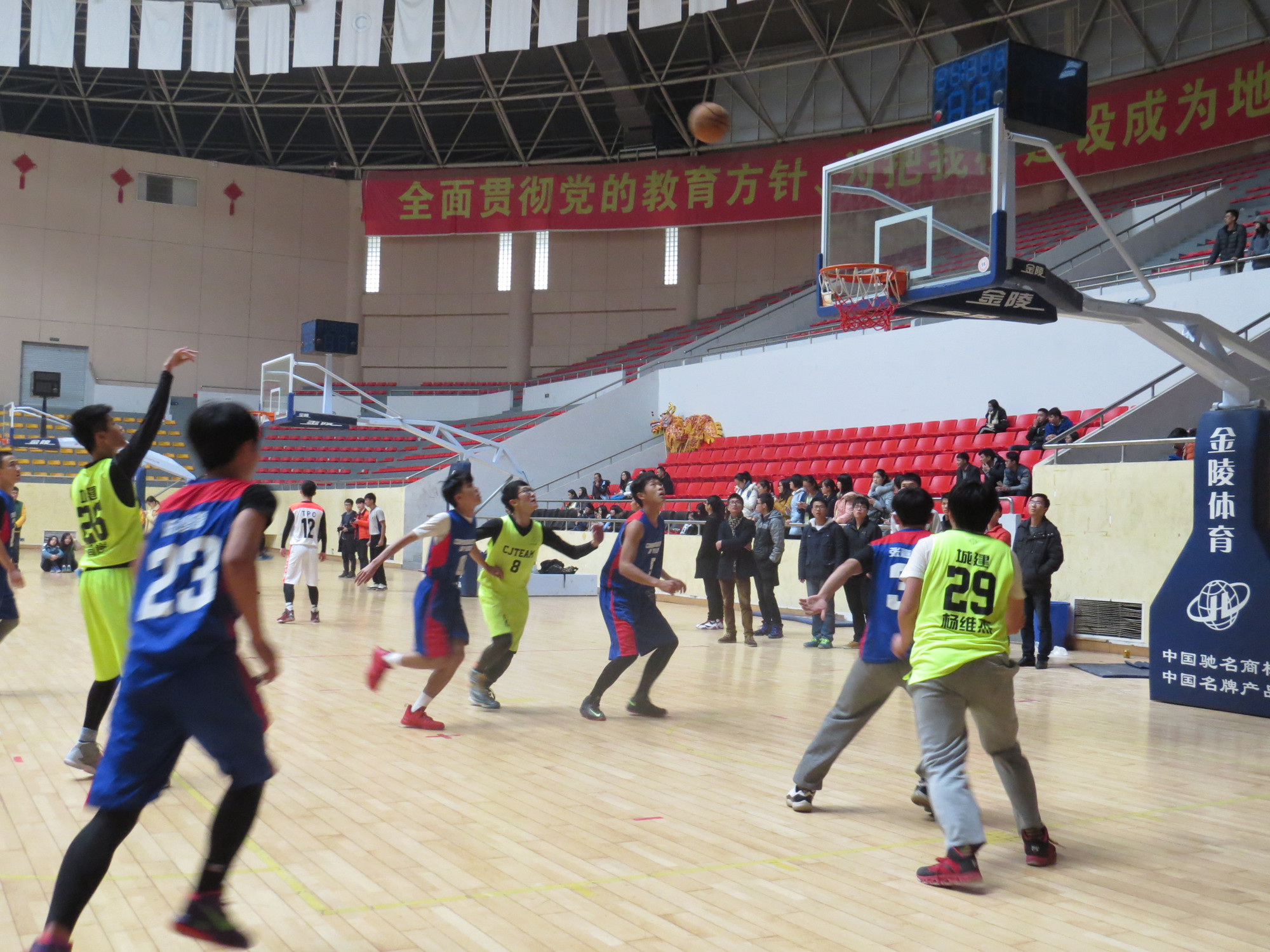 一声哨响,裁判员将球向上一抛,双方队员迅猛跳起,奋力争抢进攻的先机。比赛一开始,我院篮球健儿们便采取主动出击的方式,他们步伐矫健,技术娴熟,配合默契,敢打敢拼,在激烈的攻防中多次打出精妙的配合,赢得了观众热烈的呐喊与掌声。上半场我院球队以六分的微弱优势领先。下半场开始,音乐学院虽处于下风,但毫不示弱,比分几次被不断拉近,现场氛围被带向高潮。我院队员面对强队,临危不乱,稳扎稳打,最后几个关键得分,锁定胜局,最终以36:32险胜音乐学院,历史性地挺进决赛。 比赛结束后双方队员之间的友好握手完美诠释了“比赛第一,友谊第二”的体育精神。此次比赛不仅加强了城建学院与其他学院的联系和友谊,培养了同学们的集体荣誉感,更有利于城建学院向内凝聚“拳头力量”,向外展示学院朝气蓬勃的青春风采。 ![]() 的