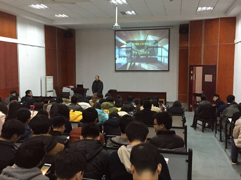 2015年12月28日下午四点,在方荫楼1区城市建设学院一楼报告厅,城建学院工程管理系组织召开2012级工程管理班的毕业实习动员大会,城建学院副院长范正根老师、系主任曾文海老师、各小组的指导老师赵海云、丁川、余莹等老师均出席会议。